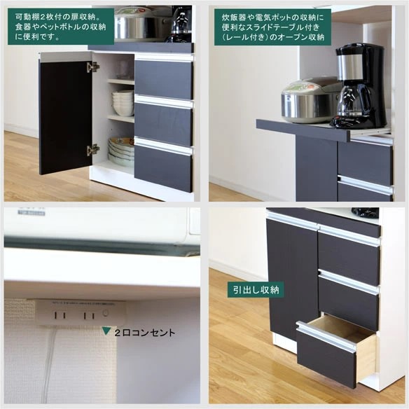 - スライドレール付 コンセント付 下収納可動棚2枚