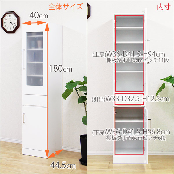 上扉内寸:幅36X奥行41.5X高さ94cm