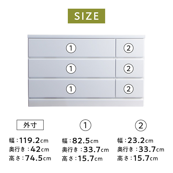 - 本体:幅119.2X奥行42X高さ74.5cm